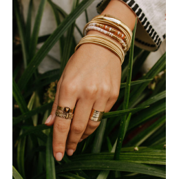 Bracelet rigide femme, acier doré jaune, agate rouge, by Stauffer