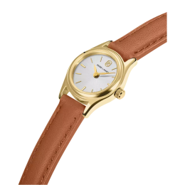 Montre Femme Pierre Lannier Pya, acier PVD jaune et cuir brun 091M524