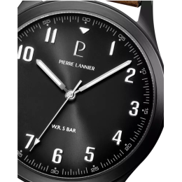 Montre Homme Pierre Lannier AVIATEUR en acier PVD noir et cuir brun 261K434