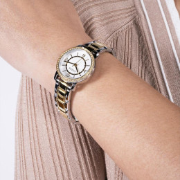 Cette montre pour femme redéfinit l'élégance bicolore en associant l'éclat de l'or jaune à la pureté du blanc,.