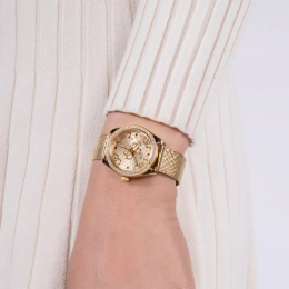 TypeMontre MarqueGuess Montres Couleur du braceletDoré GenreFemme MouvementQuartz Matière BraceletAcier StylesMode AgeAdulte AffichageAnalogique.